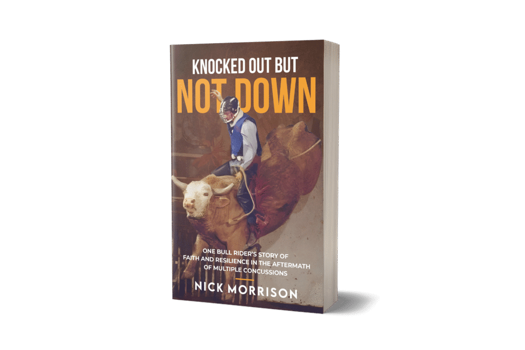 Knocked Out But Not Down is the powerful true story of Nick Morrison’s journey from the rodeo arena to rock bottom and back again. After multiple concussions and a career-ending injury, Nick lost not only his dream but also his ability to speak. Refusing to give up, he fought through pain, fear, and silence to rebuild his life through faith and resilience.